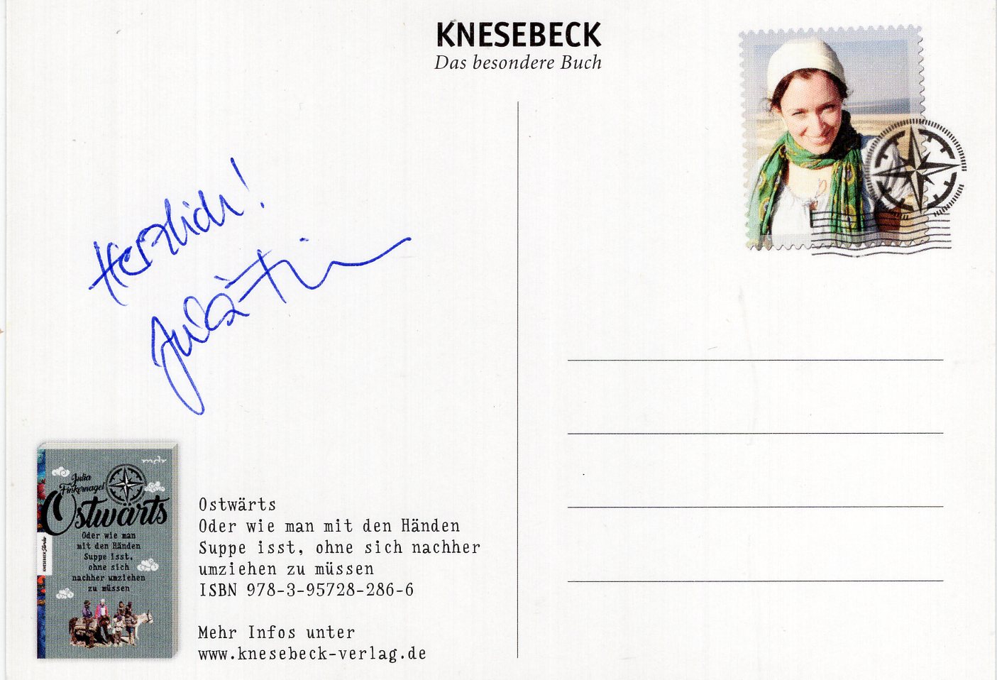 auf der Rückseite signierte farbige Postkarte 10x15cm