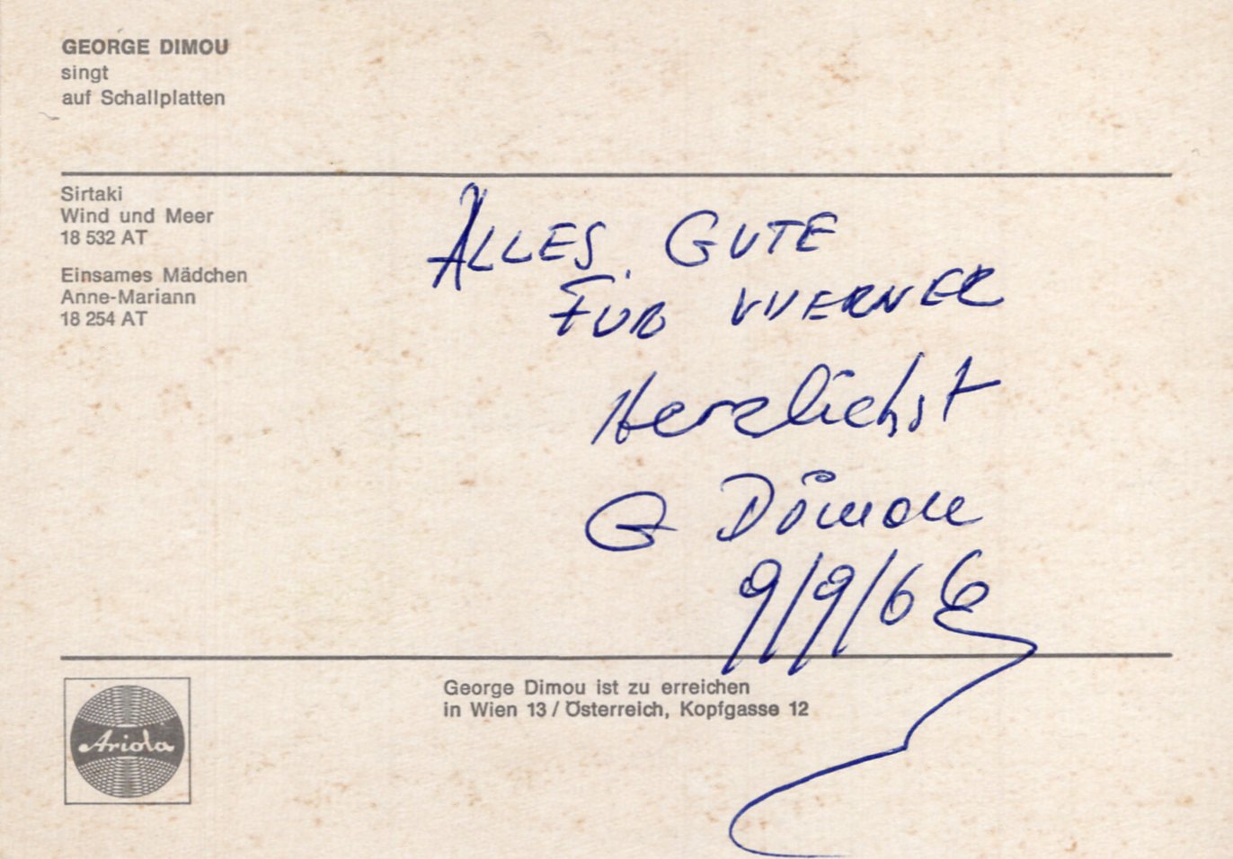 auf der Rückseite signierte farbige Autogrammkarte 10x15cm - mit Widmung