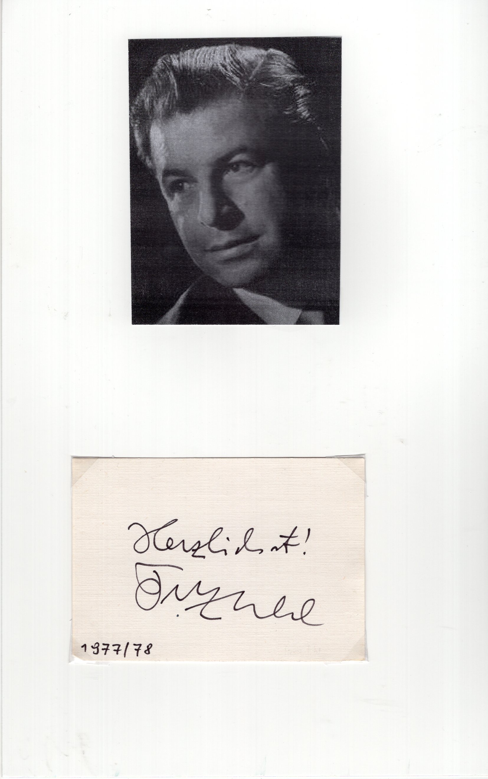 signierte Blankokarte 7x10,5cm. Dieses ist zusammen mit einem Bild auf einem Karton 17x28cm mit Fotoecken befestigt