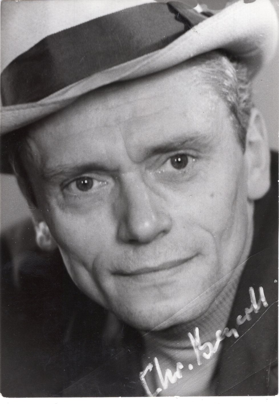 auf der Rückseite signierte sw Autogrammkarte 10x15cm (rechts unten am Rand leicht geknickt)