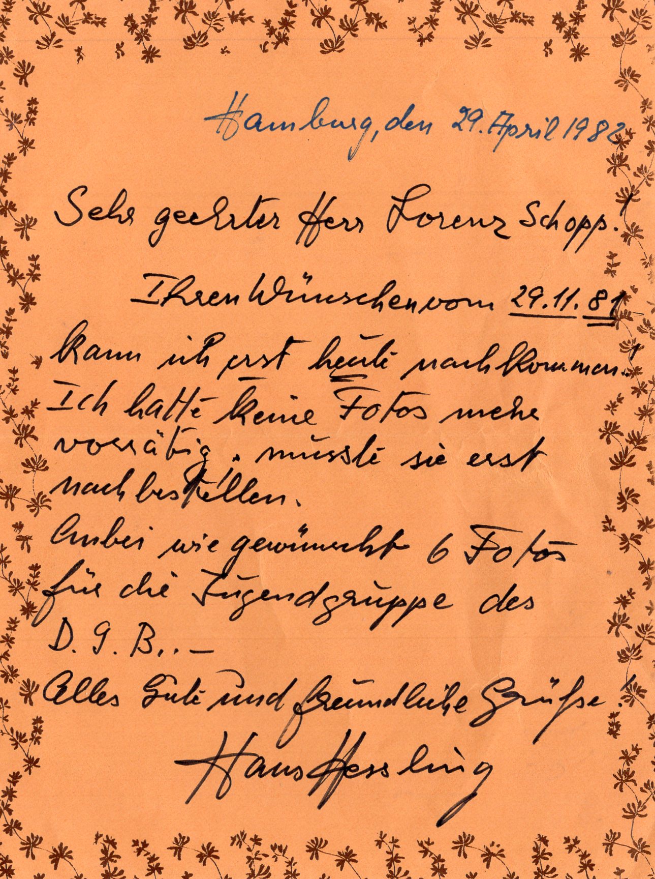 handschriftlicher Brief 14x18,5cm - mit Unterschrift