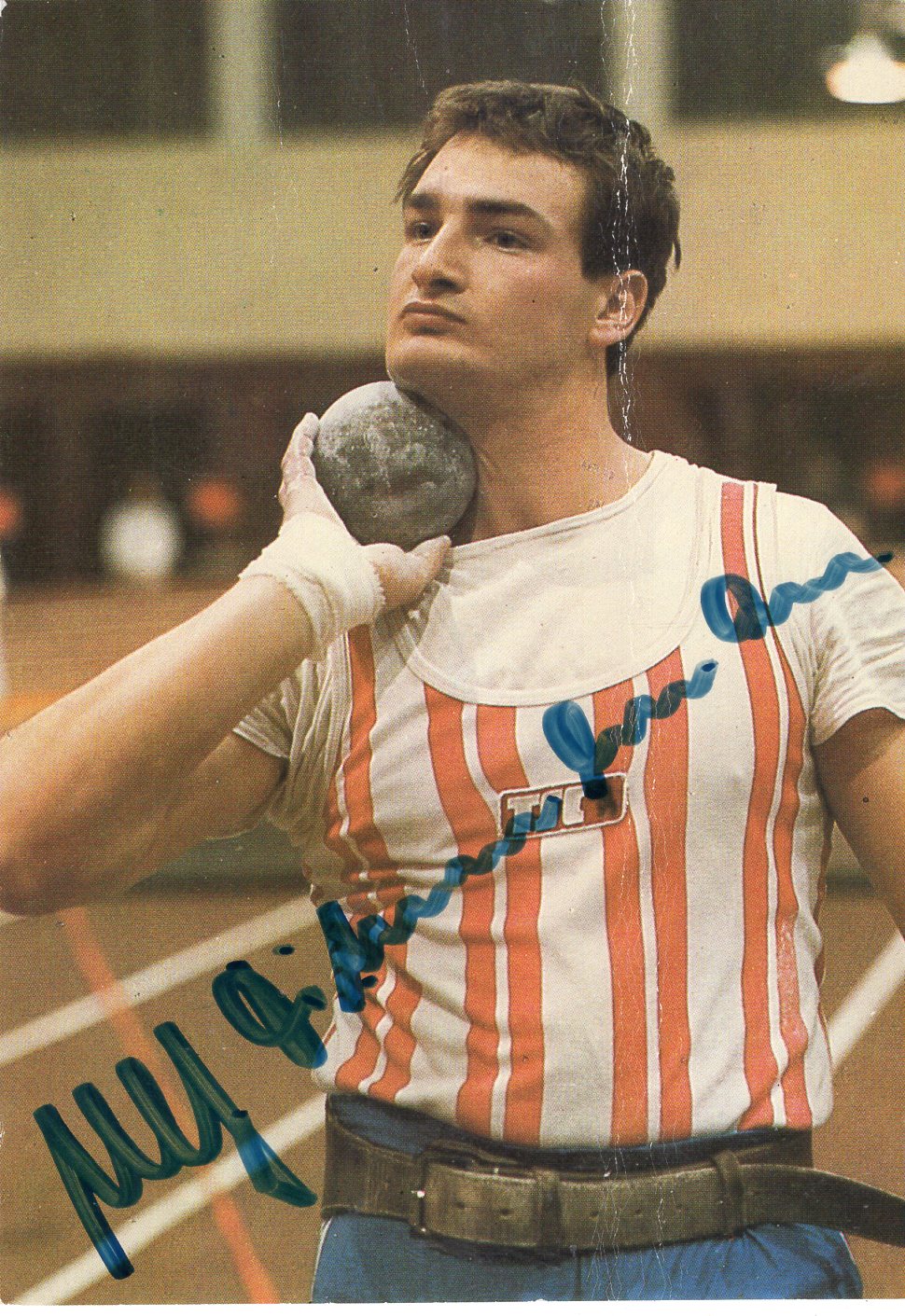 signierte farbige Autogrammkarte 10x15cm (in der Mitte befindet sich eine längere Druckstelle)
