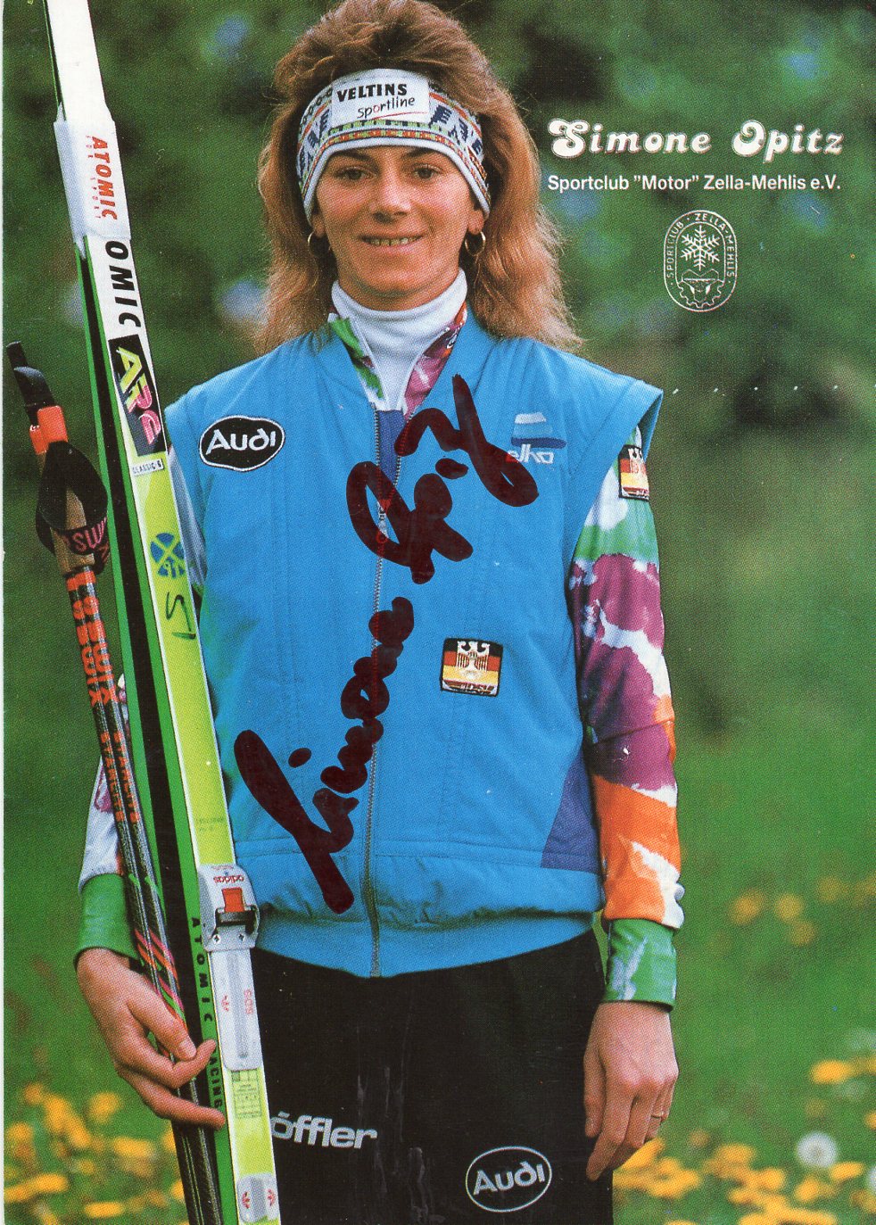 signierte farbige Autogrammkarte 10x15cm (rechts oben am Rand befindet sich ein minimaler Abdruck des Poststempels - kaum sichtbar)